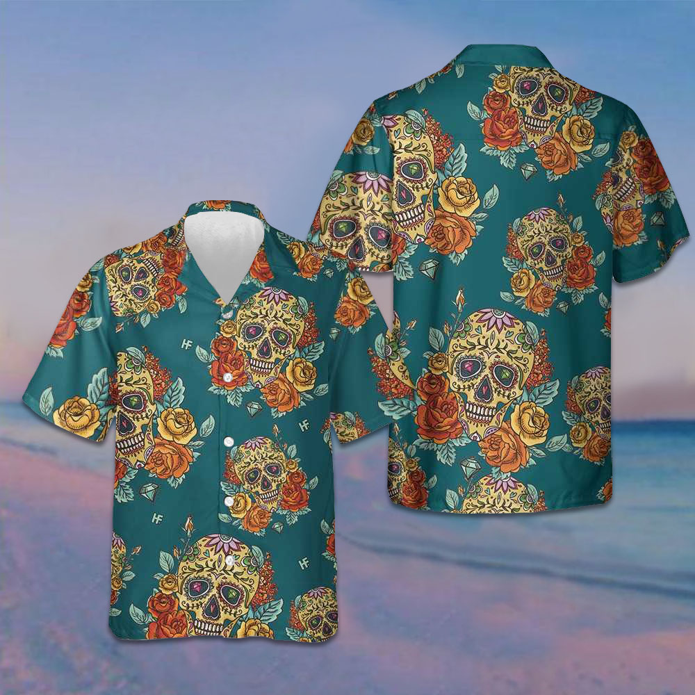 Inspired directly by the theme of “Roses Sugar Skulls Hawaiian Shirt Mexican Skull Shirt Day Of The Dead Gifts”, delivering a unique and conversation-starting look.