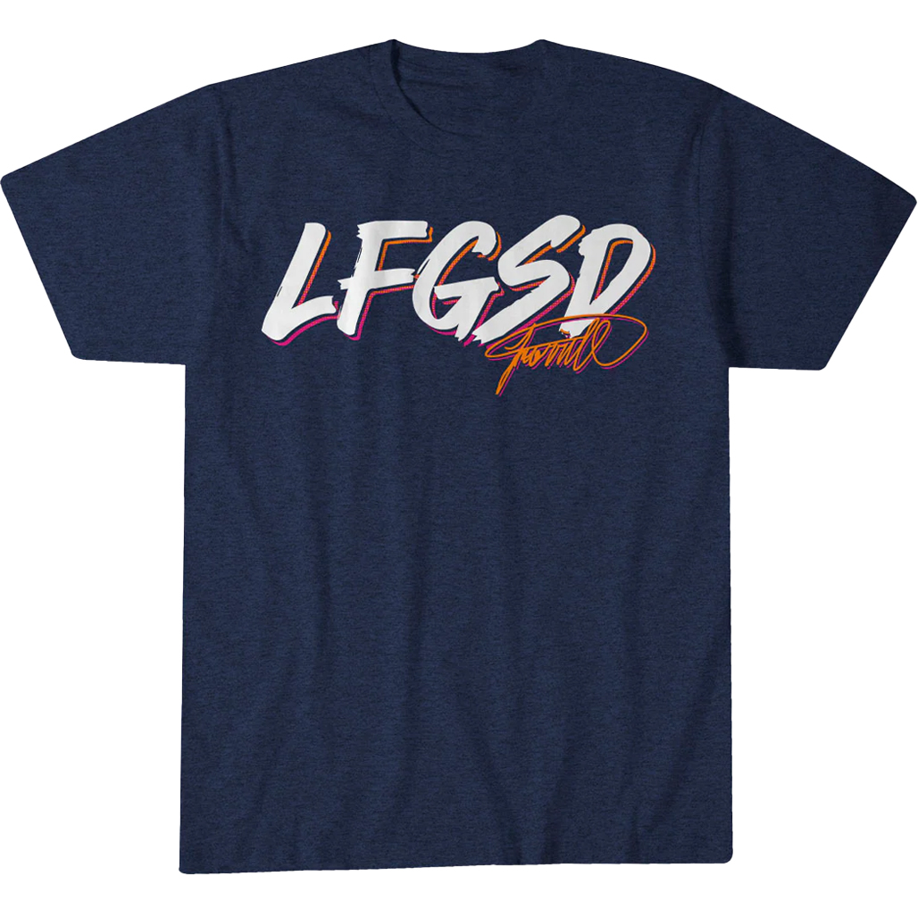 Bring the hype to every game with the San Diego Padres Jackson Merrill LFGSD T-Shirt, a bold expression of excitement and team pride. This tee captures the energy and momentum of Padres baseball and a rising young star.