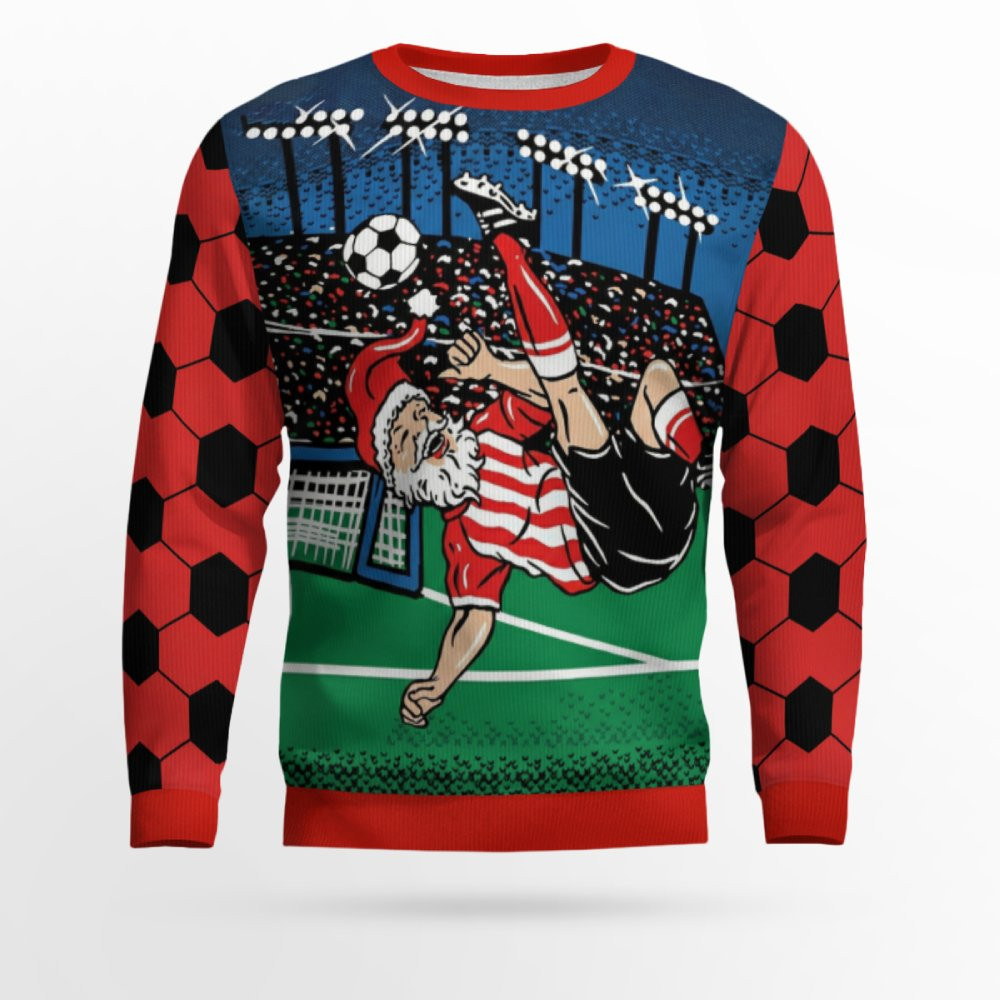 An ugly Christmas sweater is a festive and tacky sweater or sweatshirt that is typically worn during the Christmas season. They are often made of acrylic or wool and feature clashing patterns, funny images, hilarious sayings or quotes, and extravagant embellishments, such as faux fur, tree garland, or gold ribbon.