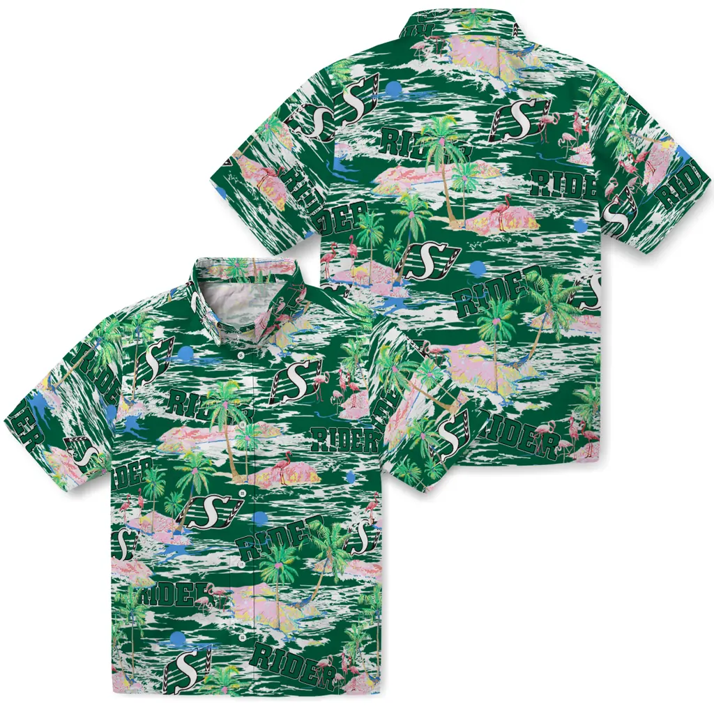 Saskatchewan Roughriders Flamingo Retreat 2026 Hawaiian Shirt Saskatchewan Roughriders Flamingo Retreat 2026 Hawaiian Shirt