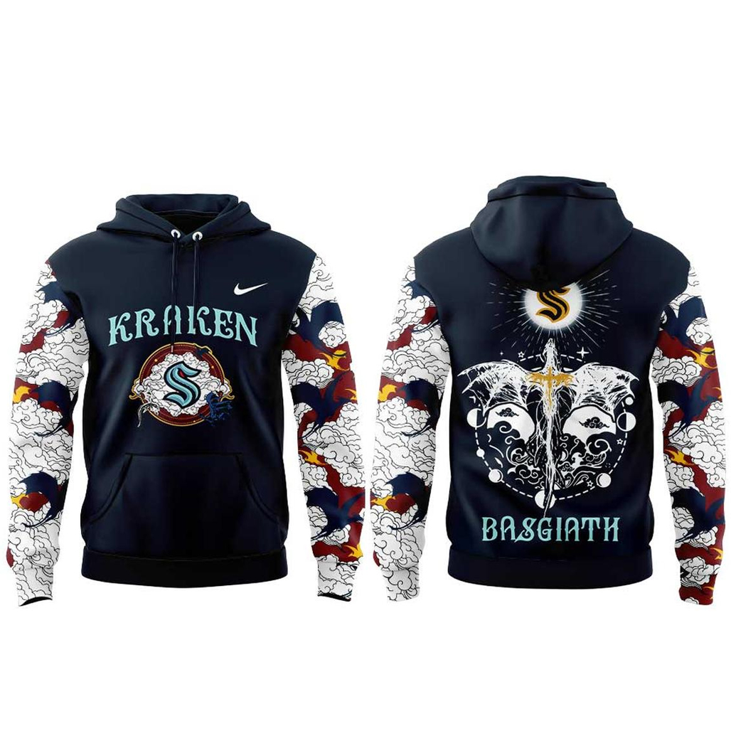 Rise from the depths with legendary power. The Seattle Kraken Fourth Wings 2026 Basgiath Night Shirt blends the fierce identity of Kraken hockey with the elite, battle-ready energy of Basgiath, creating a bold and unforgettable piece.