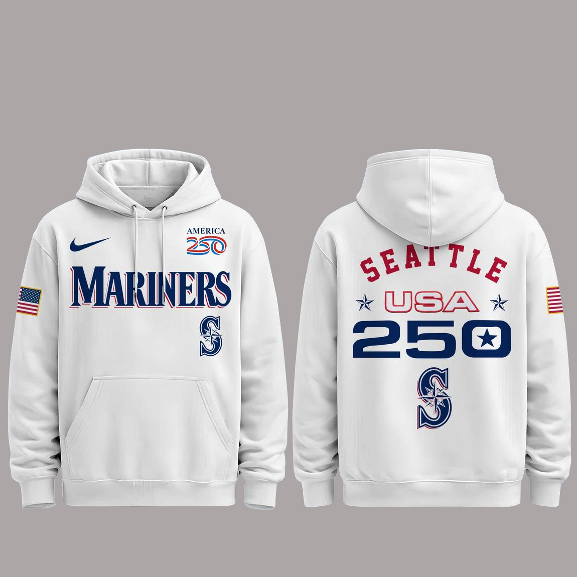 In 2026, as America commemorates 250 years of independence, the Pacific Northwest rises with blue and teal pride. The Seattle Mariners 250 USA 2026 Celebration America 250 x Major League Baseball Hoodie blends patriotic spirit with the enduring energy of Mariners baseball — a franchise that’s captured the hearts of fans from T-Mobile Park to every corner of the AL West. It’s more than a hoodie — it’s a tribute to American history, city passion, and the growing legacy of Seattle’s baseball community.