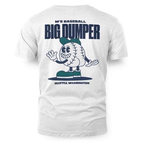 Featuring a cartoon rendition of the Mariners’ very own Big Dumper, this shirt is packed with personality. It’s perfect for fans who appreciate both the humor and the hustle of one of baseball’s most entertaining players. It’s a tribute to the charisma and power that make Big Dumper a fan favorite.