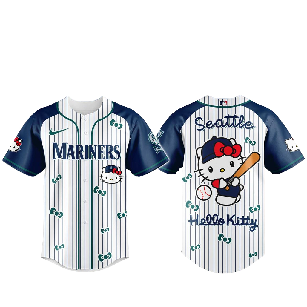 Baseball excitement meets playful character culture in a design that blends fun, nostalgia, and team pride. The Seattle Mariners x Hello Kitty 2026 And Sanrio World Baseball Jersey celebrates the joyful crossover between the beloved character Hello Kitty, the creative universe of Sanrio, and the proud baseball heritage of the Seattle Mariners. Inspired by the colorful spirit of Sanrio and the energy of Mariners game day, this jersey captures a moment where sports fandom and iconic pop culture come together.