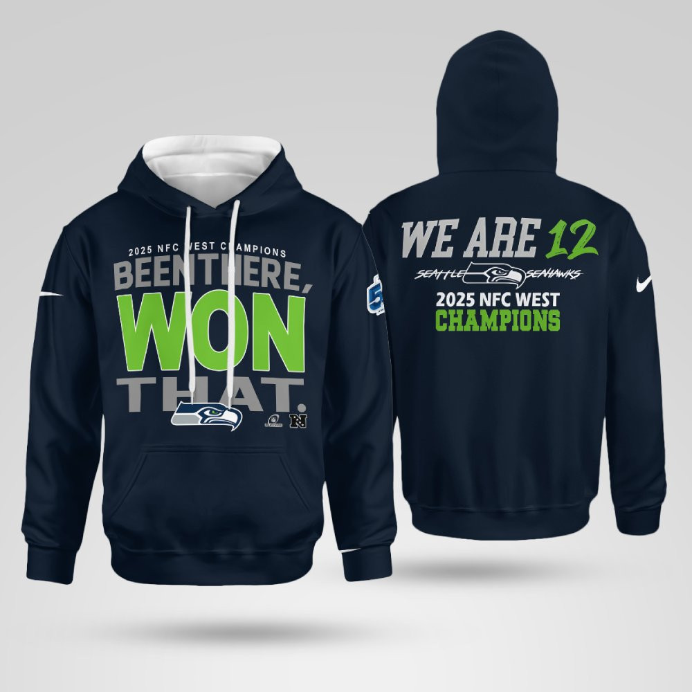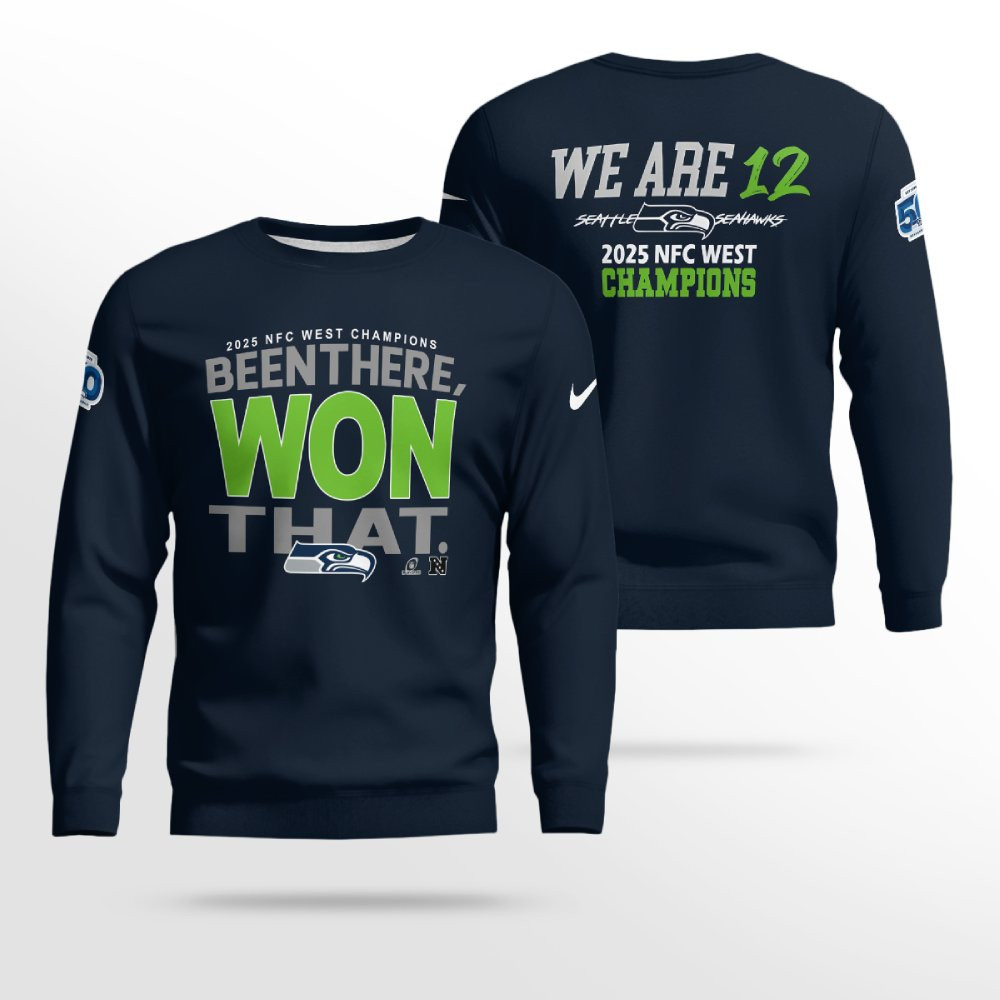 This shirt features an iconic graphic that captures the essence of the Seahawks’ NFC West triumph in 2025. The “We Are 12 Been There Won That” slogan represents the collective power of the Seahawks and their fans — the 12th man who’s been there for every high, every victory, and every legendary moment. It’s a must-have for fans who want to honor the team’s strength and dominance.