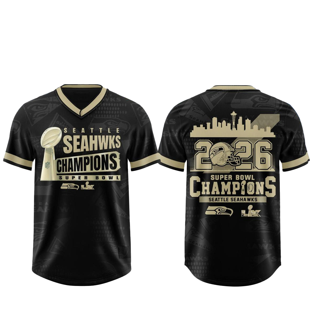 Featuring a striking black base with Seahawks colors and “Super Bowl LX Champions” inspired graphics, this jersey delivers standout fan style that celebrates Seattle’s achievement on football’s biggest stage.