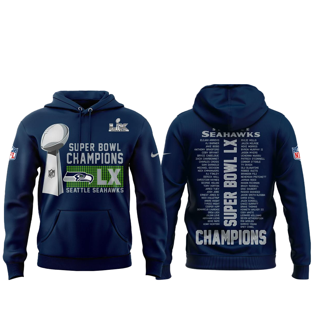 This shirt honors every member of the Seahawks squad — from starters to depth players — who made key contributions throughout the season and helped secure the Super Bowl LX title.