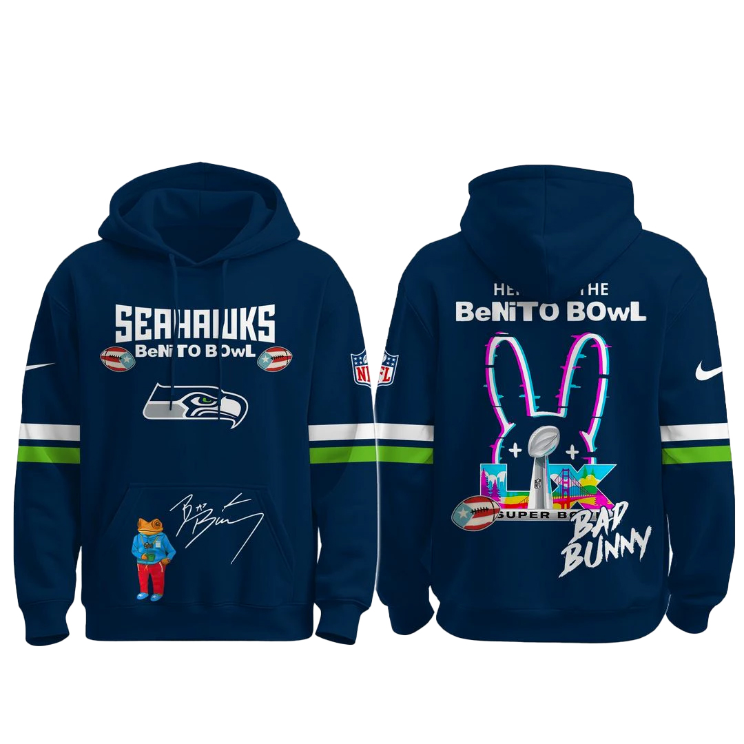 Turn up the heat for game day with the Seattle Seahawks x Bad Bunny Super Bowl 2026 Hoodie — a bold crossover that brings together the energy of the 12s and the global flair of Bad Bunny. Designed for fans who love football, music, and statement-making style, this hoodie delivers a one-of-a-kind Super Bowl–inspired look you won’t find anywhere else.