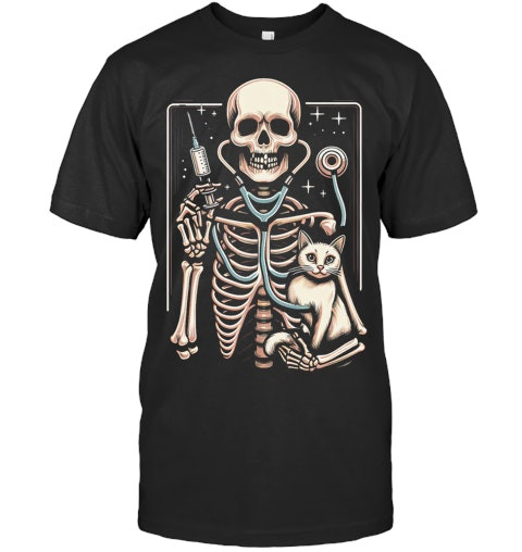 Skeleton Hug Cat Vet Tech Veterinarian Veterinary Halloween Vet T Shirt
