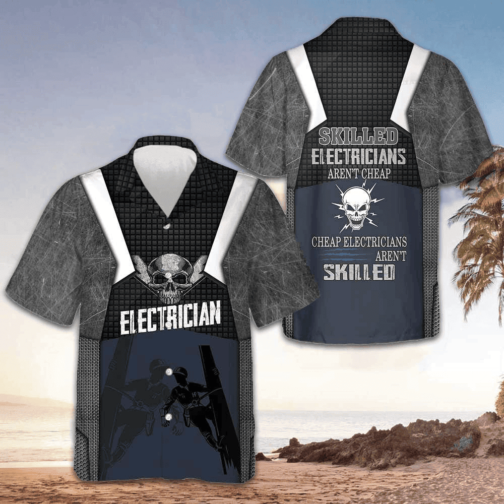 Skilled Electricians Skull Hawaiian Shirt Short Sleeve Button Up Gifts For Electricians -WearandDecor
