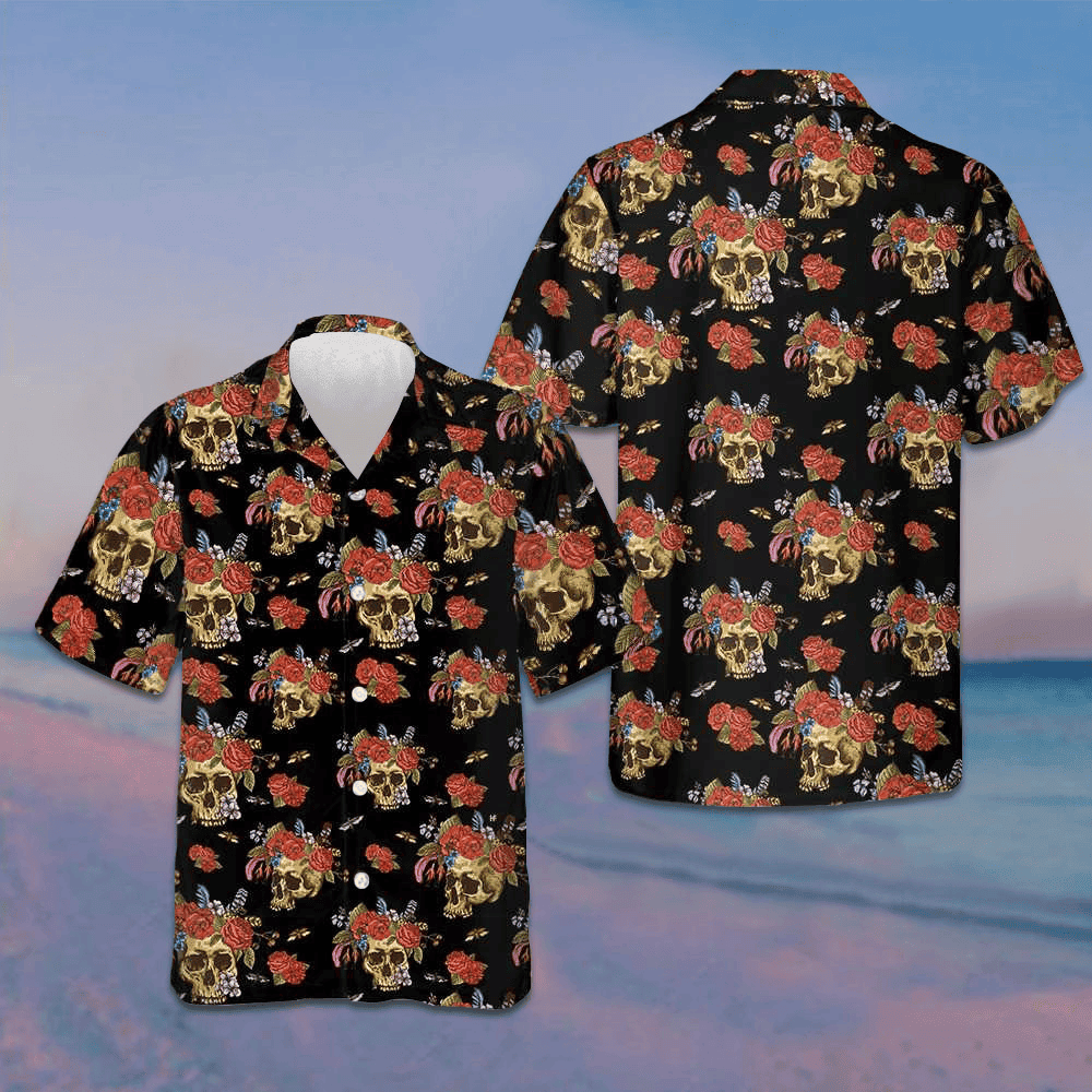Skulls And Flowers Day Of The Dead Hawaiian Shirt Short Sleeve Button Up Men Gift Ideas -WearandDecor