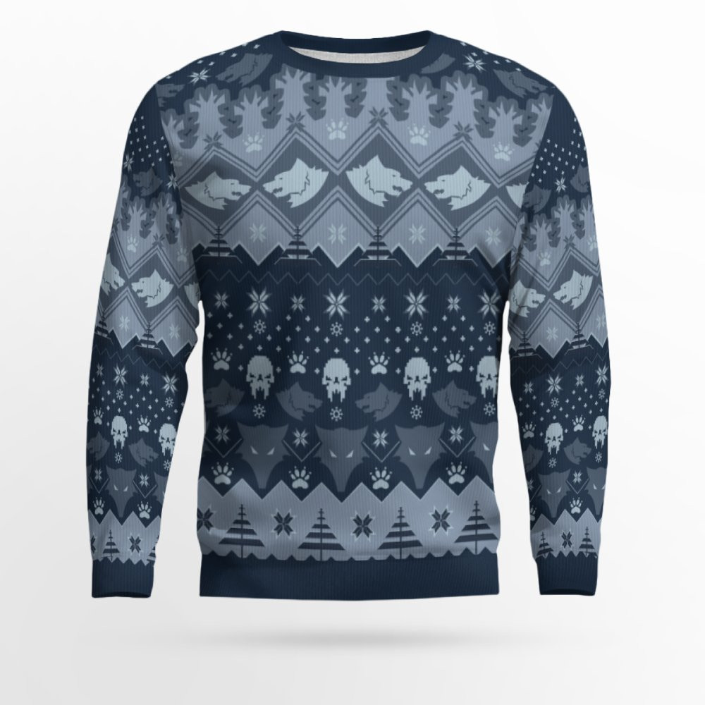 The Space Wolves of Winter design brings the cold, savage, and heroic nature of these warriors to life. It’s not just a sweater—it’s a declaration of your fandom. Celebrate the holidays with the strength and bravery that the Space Wolves represent, all while embracing the festive season.