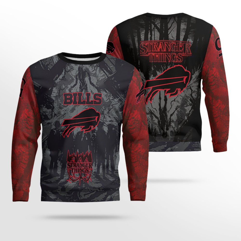 This high-quality hoodie merges the thrilling supernatural world of Stranger Things with the hard-hitting excitement of Buffalo Bills football. Featuring standout graphics and references to both the hit Netflix series and the Bills’ epic season, it’s the ultimate piece for fans who want to rep their team while indulging in their favorite show.