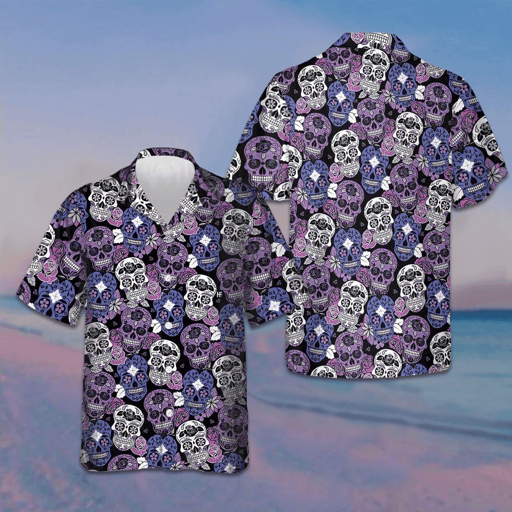 Sugar Skull Purple Hawaiian Shirt Mexican Skull Shirt Day Of The Dead Ideas -WearandDecor