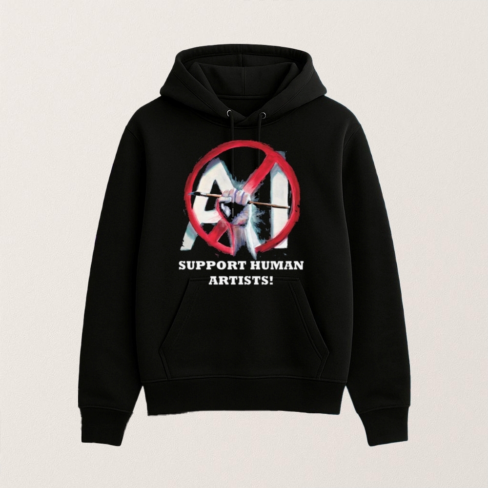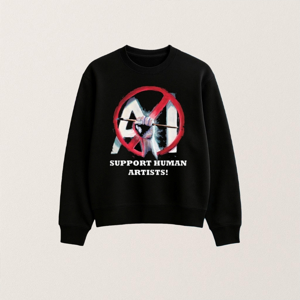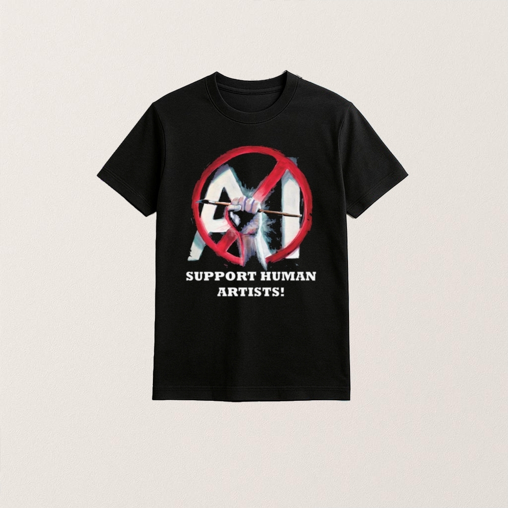 The “Support Human Artists, No AI” T-shirt emerges from a historical context marked by rapid technological advancements and the growing influence of artificial intelligence in creative fields. Significant events, such as the development of AI-generated art and music, have sparked debates about the role of technology in creativity and the potential displacement of human artists. Controversies surrounding copyright, originality, and the value of human touch in art have captured public imagination, leading to movements advocating for the recognition and support of human creativity. These discussions have fueled creative expressions, including wearable items like T-shirts, which serve as both a statement and a rallying cry for those who champion the irreplaceable nature of human artistry in an increasingly automated world.