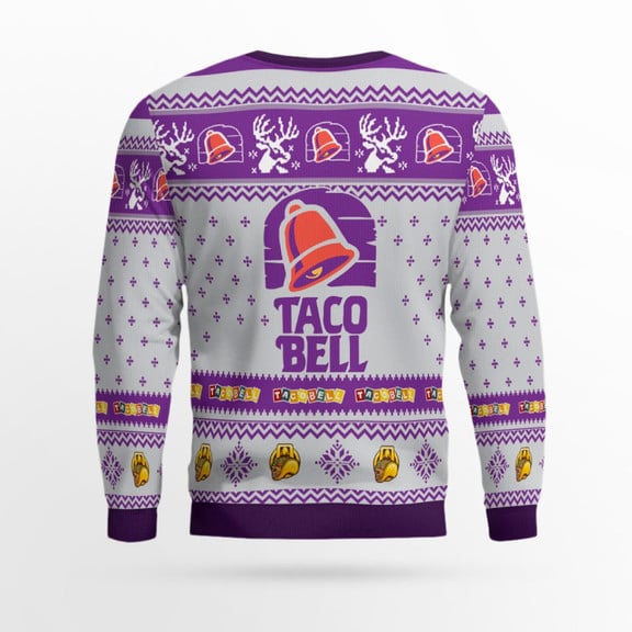 The sweater features Taco Bell’s signature purple color and logo, adding a unique twist to the traditional ugly Christmas sweater. Whether you’re a fan of the Taco Bell brand, love tacos, or just want to show off your quirky style, this sweater is perfect for adding some fun to your Christmas festivities.