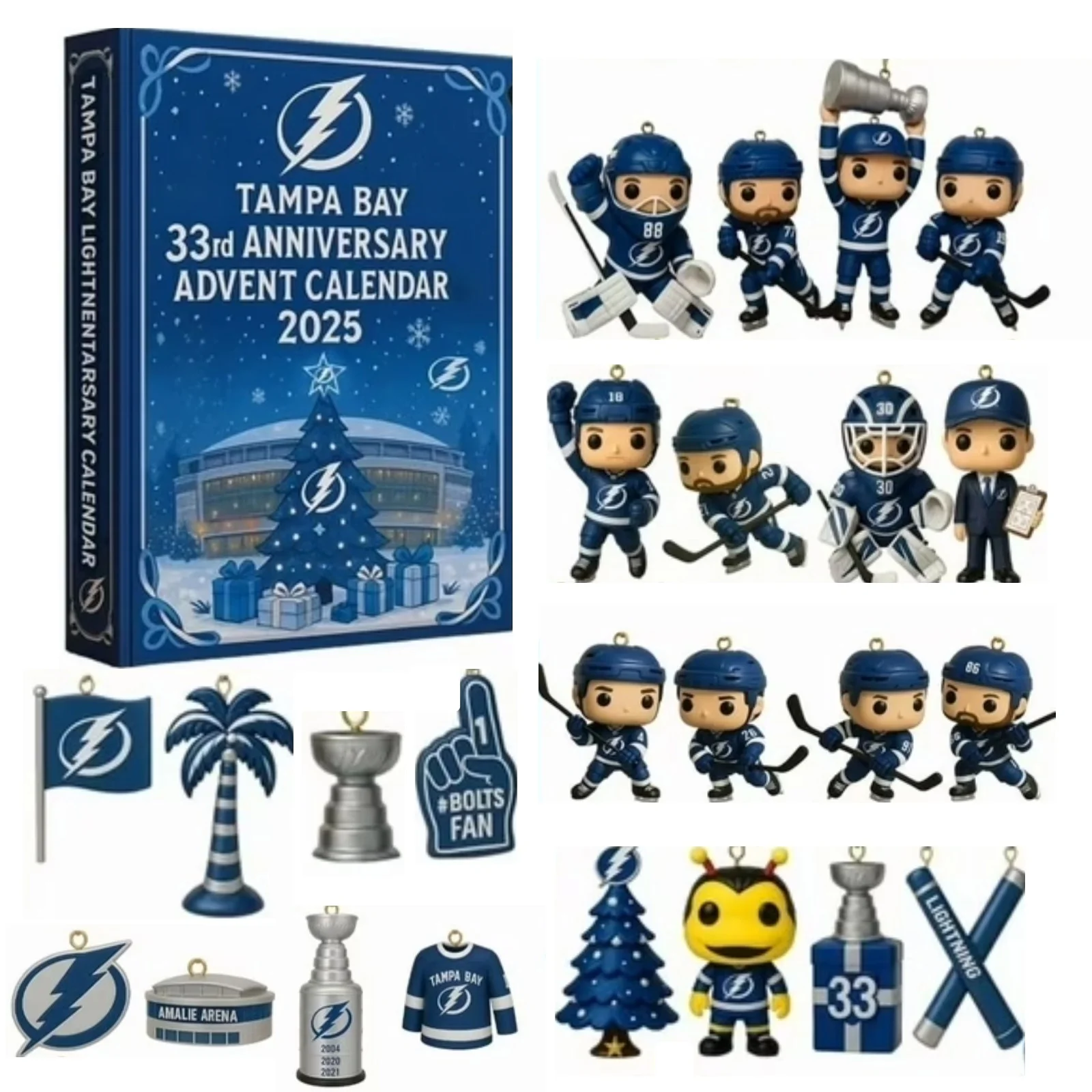 Celebrate the legacy of the Tampa Bay Lightning with the Tampa Bay Hockey 33rd Anniversary 2025 Advent Calendar! This exclusive edition advent calendar honors 33 years of electric moments, unforgettable players, and championship triumphs in the world of hockey. Whether you’re a long-time fan or a newer supporter of the Lightning, this calendar offers a thrilling countdown to Christmas with surprises and collectibles that highlight the team’s incredible journey. With each door, you’ll uncover a tribute to the moments that have defined the franchise and its place in the NHL.