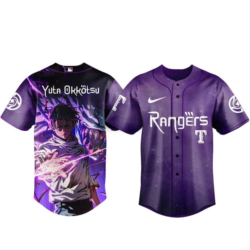 Step into a powerful fusion of anime and baseball with the Texas Rangers x Jujutsu Kaisen Night 2026 Yuta Okkotsu Baseball Jersey. This bold design blends Rangers pride with the intense presence of Yuta Okkotsu, delivering a striking and unforgettable look.