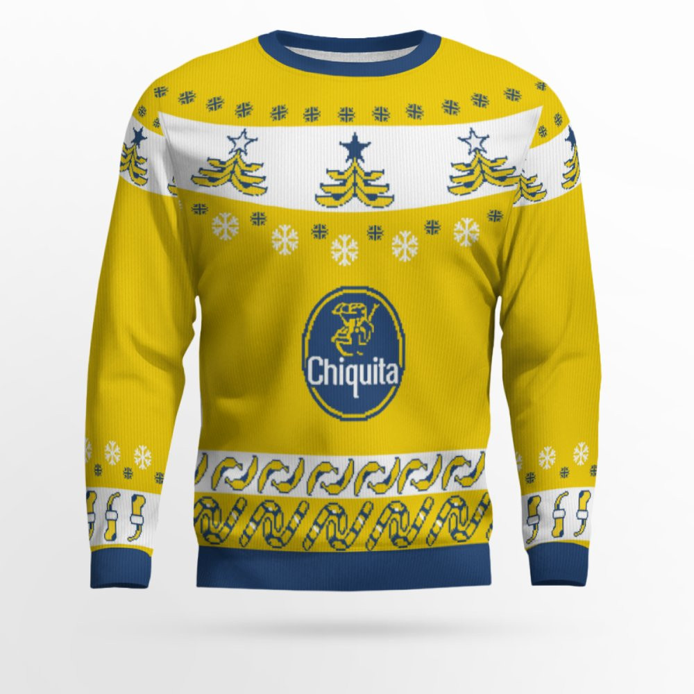 Celebrate the season in a fruity, fun, and festive way with The Yellow Holidays Chiquita Ugly Sweater 2025! This sweater brings together the iconic yellow banana logo of Chiquita with all the cozy, quirky charm of an ugly Christmas sweater. Packed with playful designs and holiday spirit, it’s the perfect way to brighten up your Christmas festivities with a little extra color and cheer. Whether you’re gearing up for a holiday party, family gathering, or just lounging at home with a festive treat, this sweater is the ultimate way to show your love for Chiquita and the holiday season.
