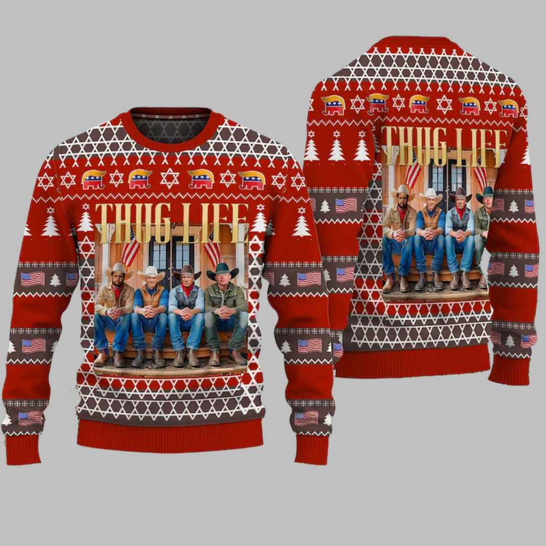 Thug Life Trump Vance Kennedy Elon Ugly Christmas Sweater
