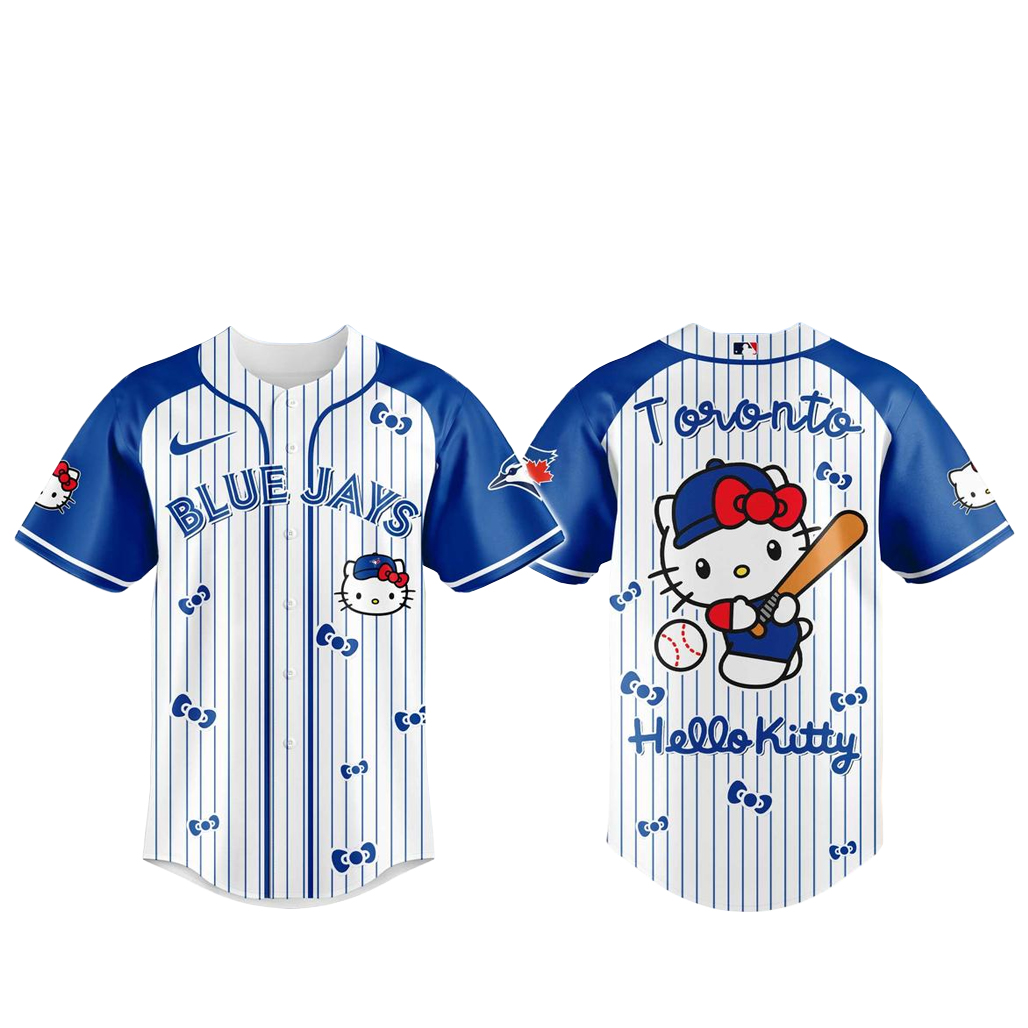 This design brings together the cheerful personality of Hello Kitty with the excitement of Blue Jays baseball, creating a unique jersey that stands out in any fan collection.