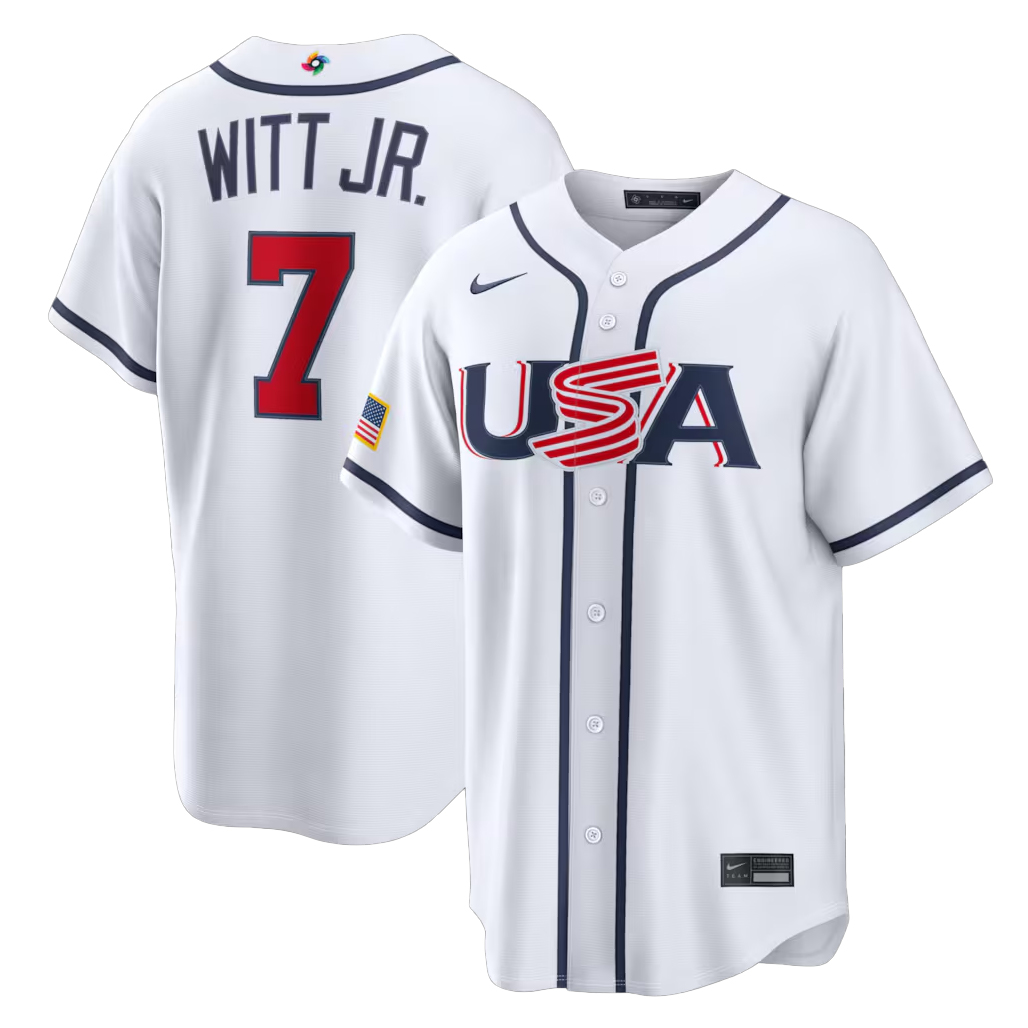 This jersey reflects Bobby Witt Jr.’s explosive playstyle and dedication while representing the United States against the best teams in the world. It’s a tribute to rising stars who bring speed, talent, and determination to every inning.