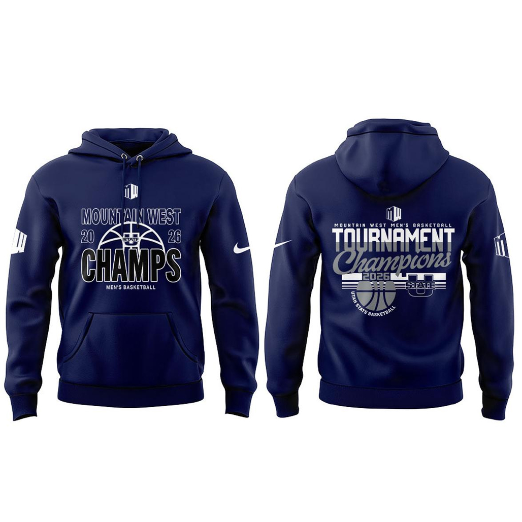 This design commemorates Utah State’s achievement as the 2026 Mountain West Men’s Basketball Champions, capturing the excitement and pride of a historic season.