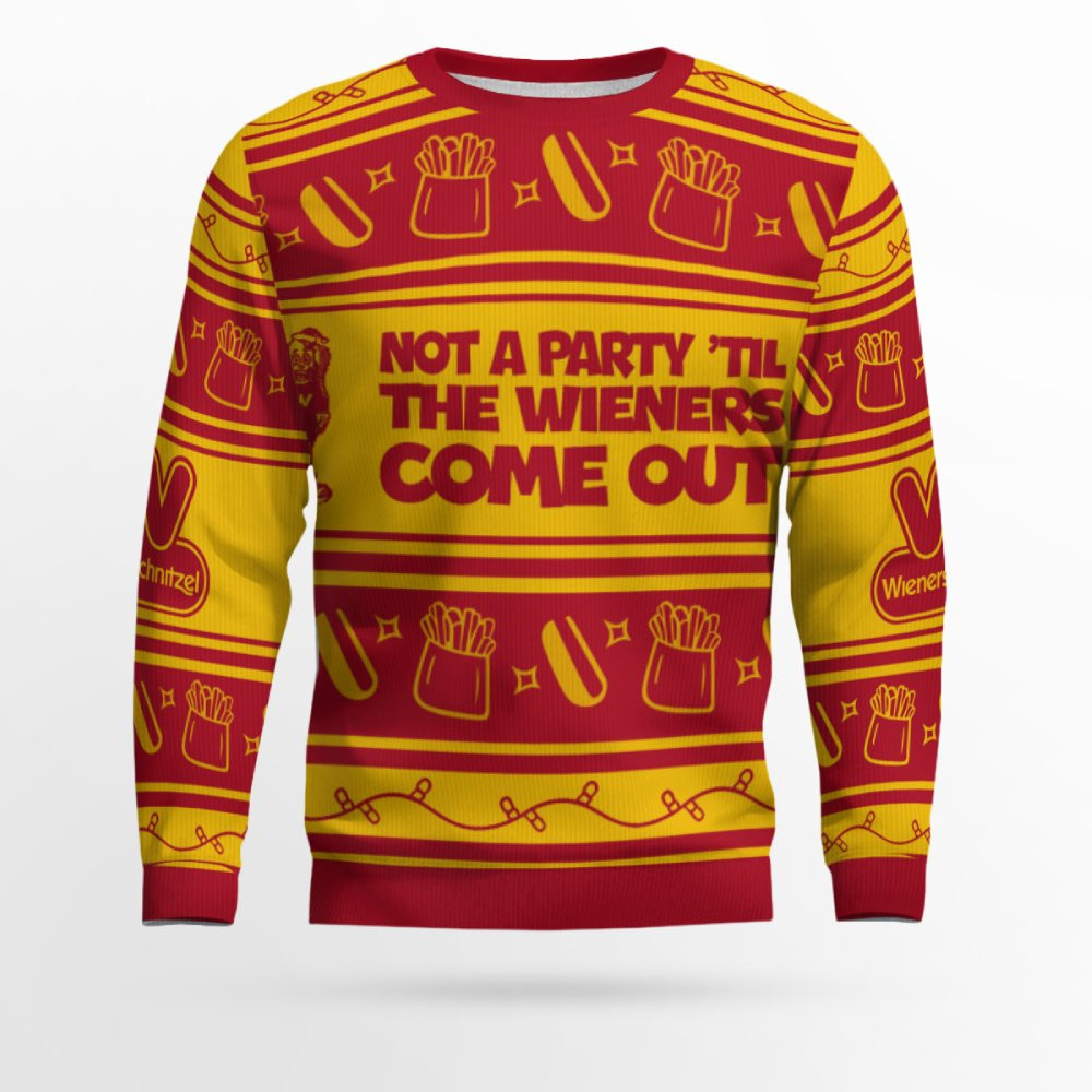 Wienerschnitzel Not A Party 'Til The Wieners Come Out Ugly Christmas Sweater