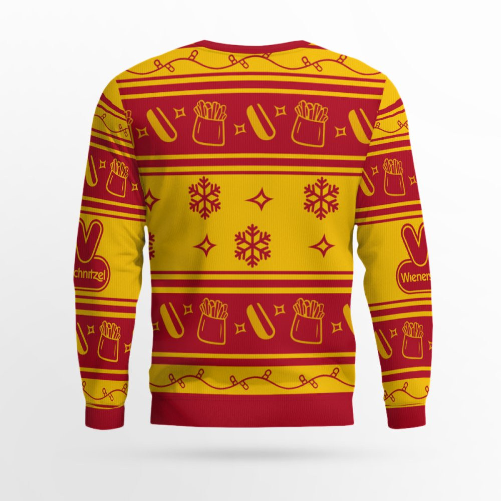 Ideal for fans of Wienerschnitzel, hot dog enthusiasts, or anyone who enjoys lighthearted, food-themed holiday humor.