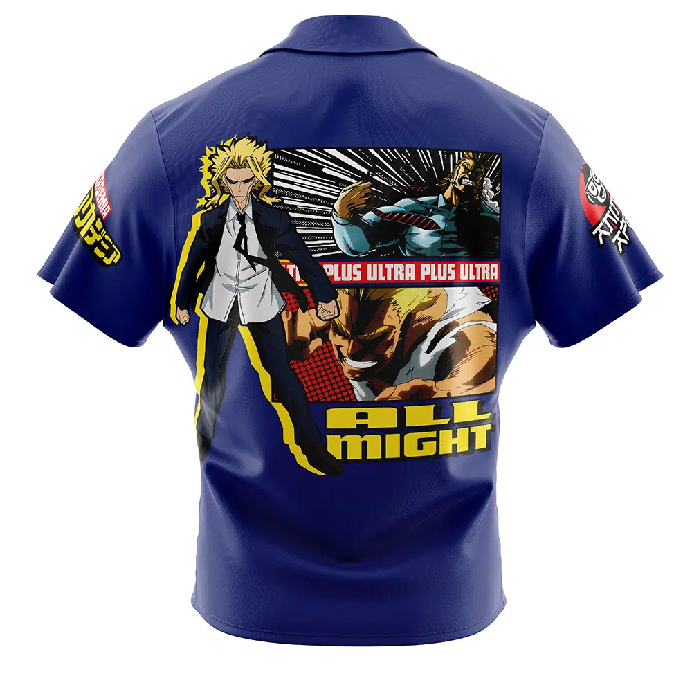 This shirt brings together the powerful, larger-than-life presence of All Might with the colorful, carefree nature of a Hawaiian shirt. Featuring All Might in dynamic poses with tropical designs, it’s a unique blend of anime fandom and laid-back style. For fans who want to show their admiration for All Might in a fresh and exciting way, this shirt is the perfect choice.