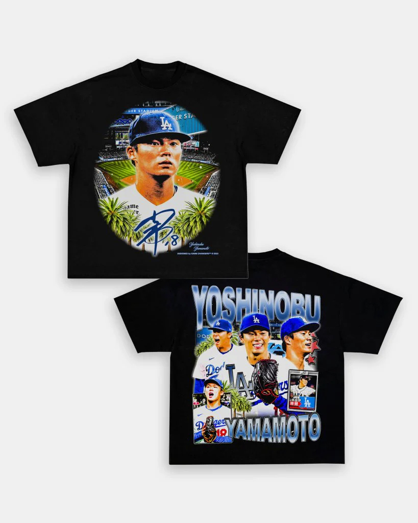 Show your support for Yoshinobu Yamamoto, the dynamic pitcher who’s making waves with the Los Angeles Dodgers, with this stylish Yoshinobu Yamamoto Dodgers T-Shirt. Whether he’s striking out batters or dominating the mound, Yamamoto has quickly become a fan favorite, and this shirt is the perfect way to represent both him and the Dodgers.