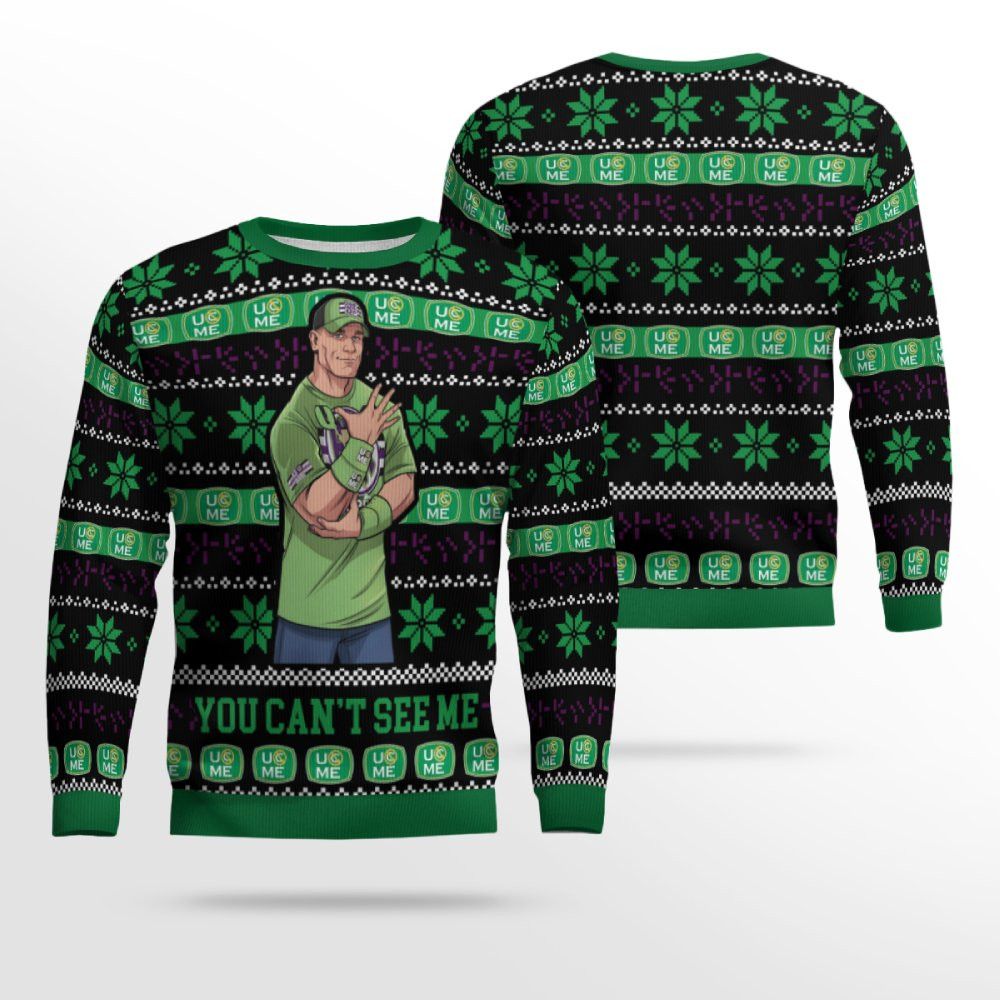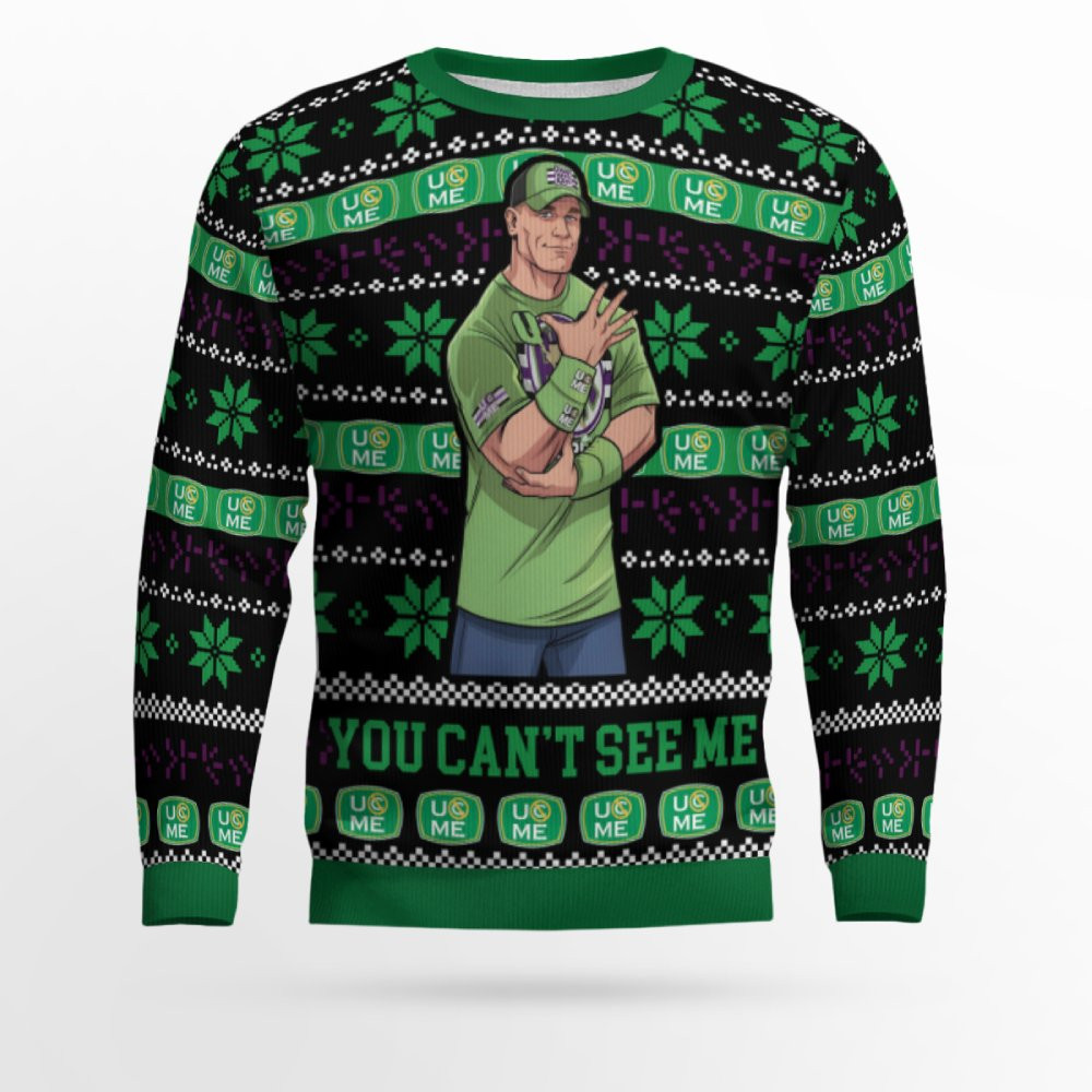 Step into holiday season hype with the You Can’t See Me John Cena Ugly Sweater—a bold, energetic, and proudly printed tribute to one of the most iconic catchphrases in wrestling history. This is the sweater that turns every room into an entrance ramp.